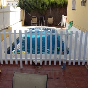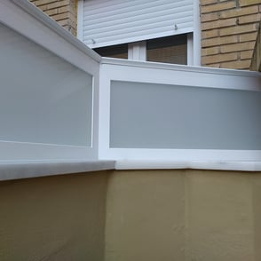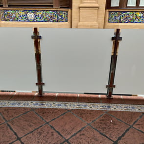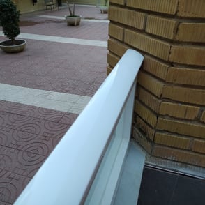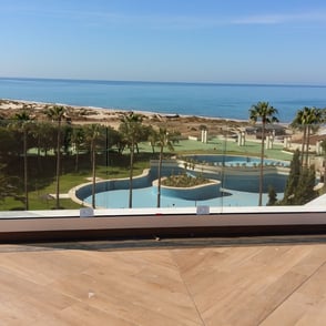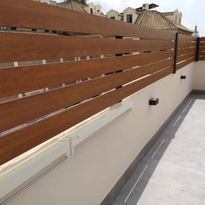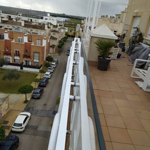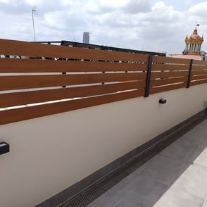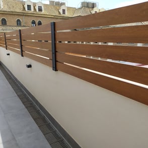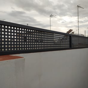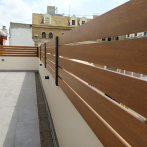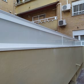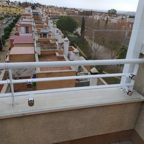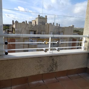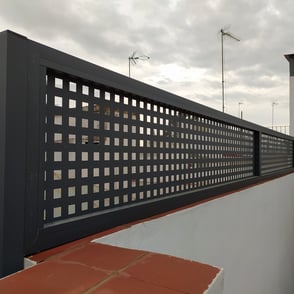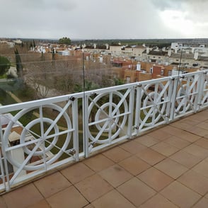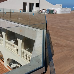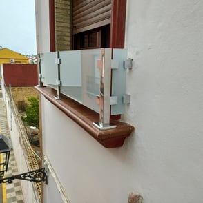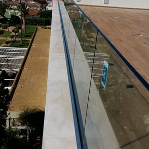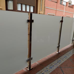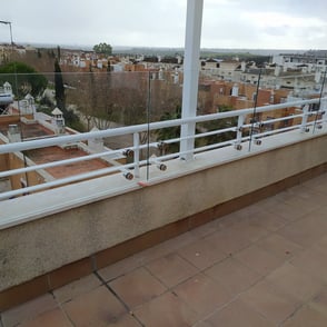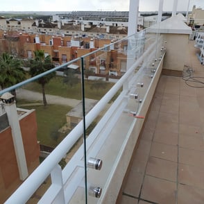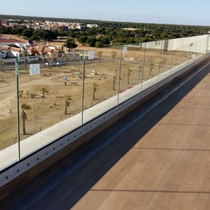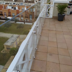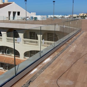 Barandillas minimalistas de vidrio y vallas con perfilería de aluminio.