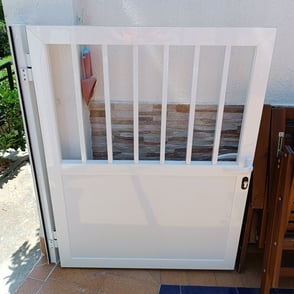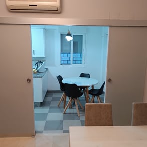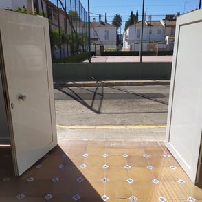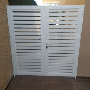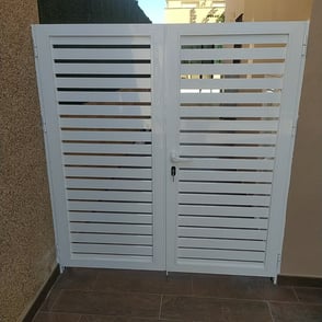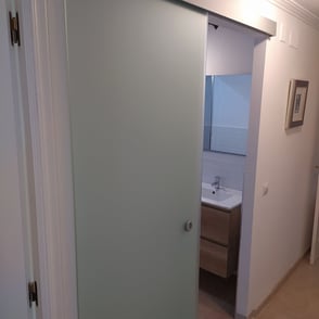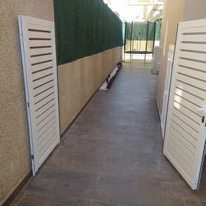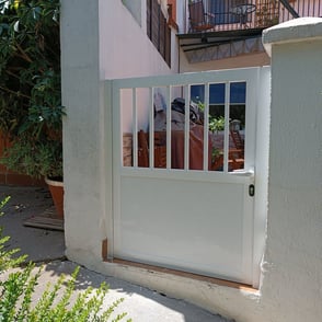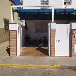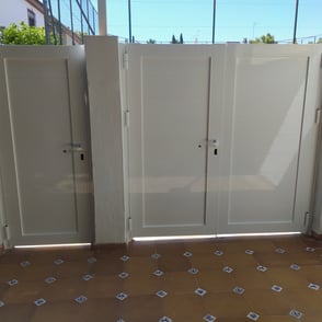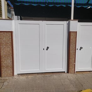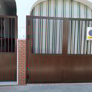 Portones de entrada de aluminio y puertas de paso de vidrio.